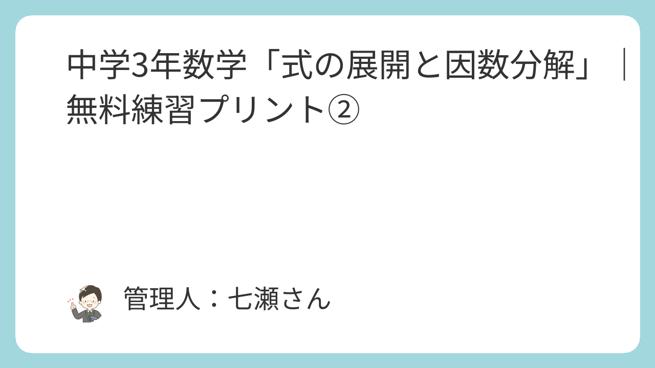 中学3年数学「式の展開と因数分解」の無料問題プリントです。
